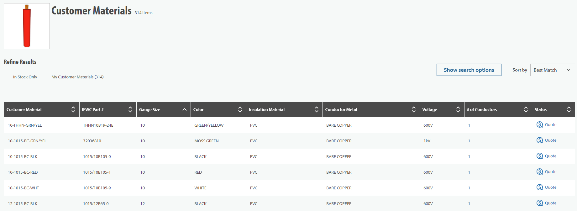 CUSTOMER PART NUMBER: Use your part number, as listed in your ERP system, to effortlessly search and find your products on IEWC.com in one centralized location.