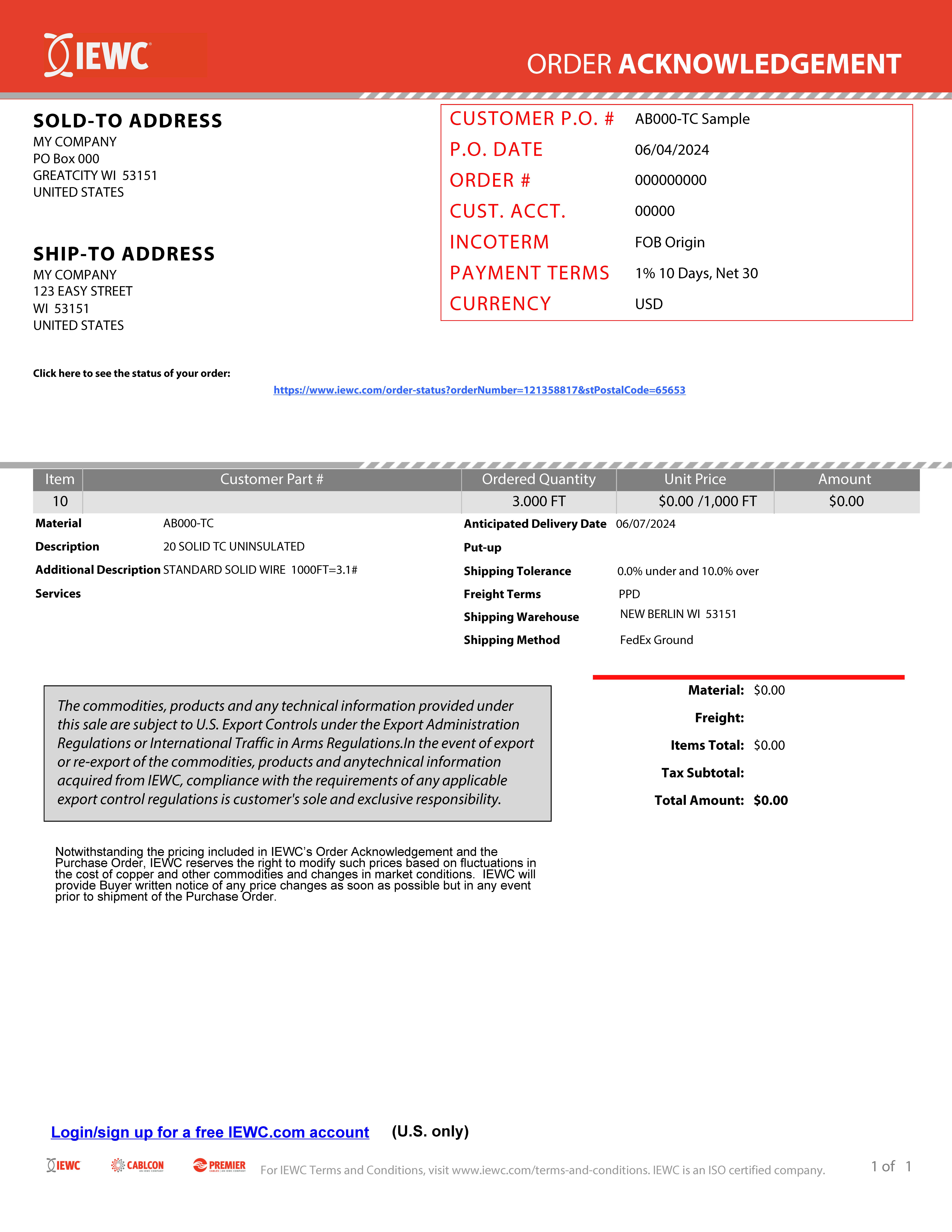 YOUR DASHBOARD: Get 24/7 access to all of your important IEWC account information. You can manage your orders, view quotes and past orders, download documents, change payment methods, and more.